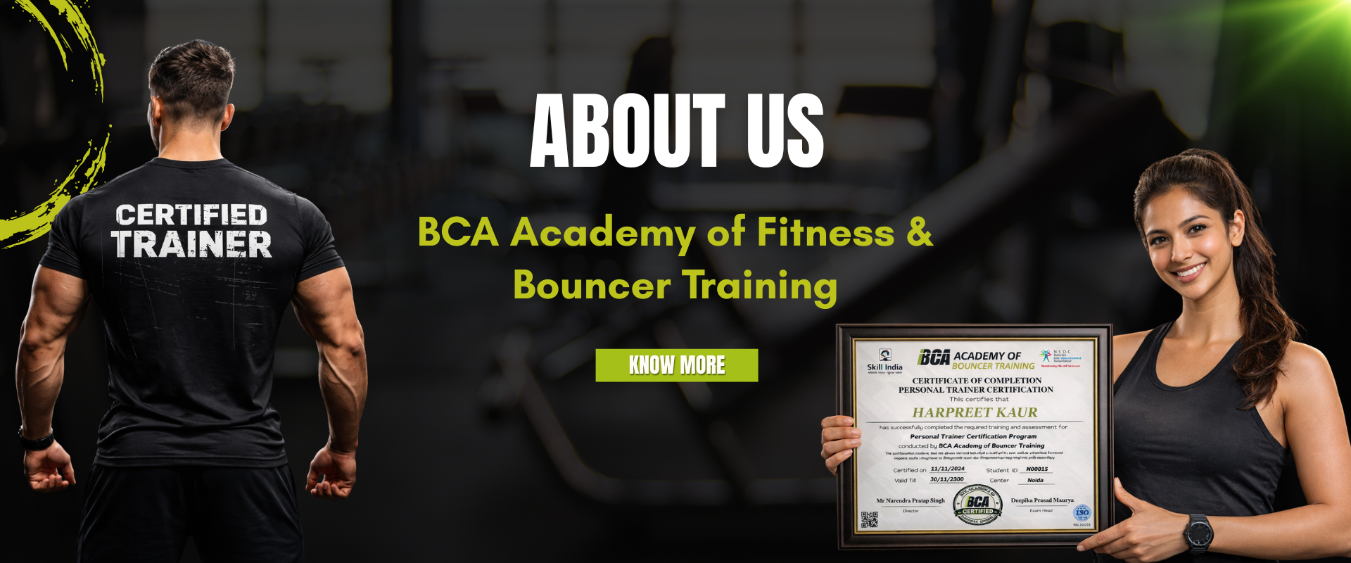 Government Registered Certification Institute Since 2017 Welcome to BCA Academy of Fitness & Bouncer Training, a government registered company established in 2017, dedicated to providing professional certification for fitness trainers, diet & nutrition experts, and bouncers in India. We specialize in helping individuals who already have practical knowledge and real-world experience but lack official certification. Our platform is designed to convert your skills into recognized qualifications through a simple and efficient processBuilding Careers, Not Just Certificates
